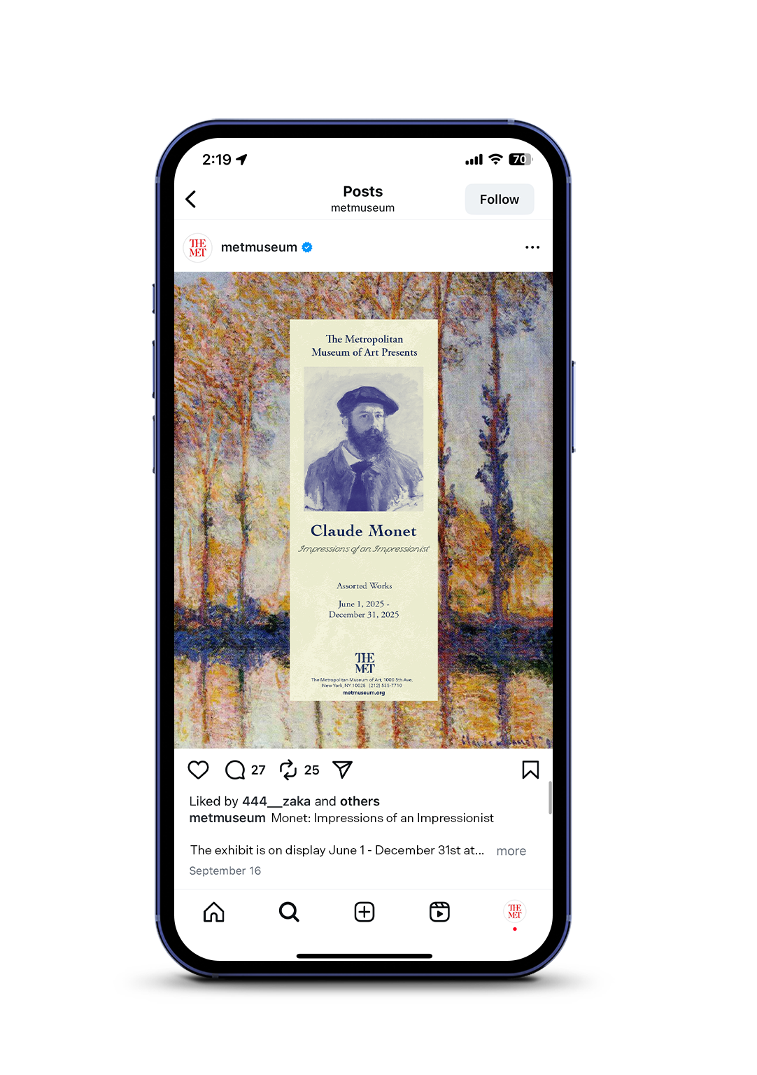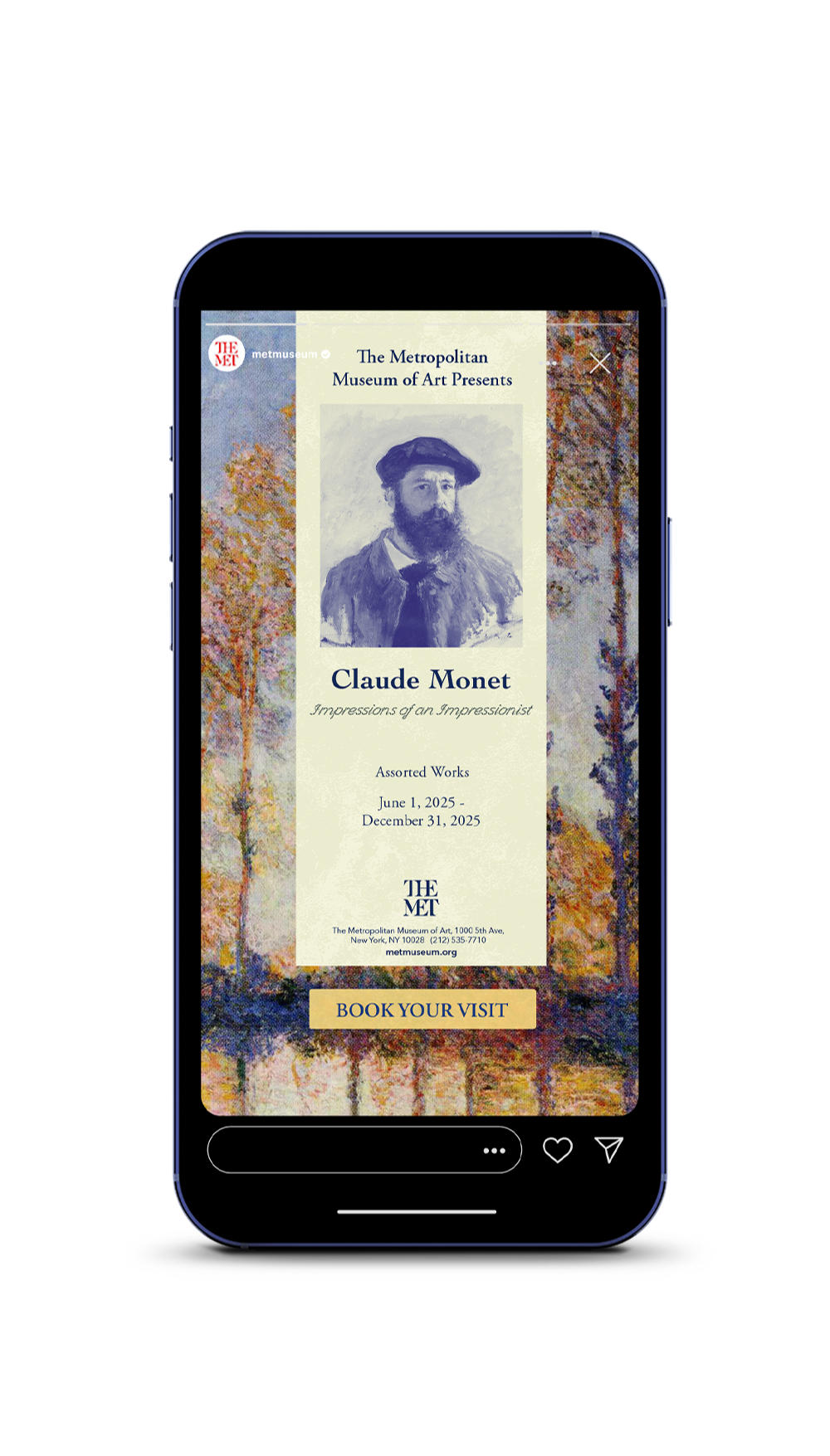 A collectable poster and social media concept designs for a Claude Monet exhibit at the MET.